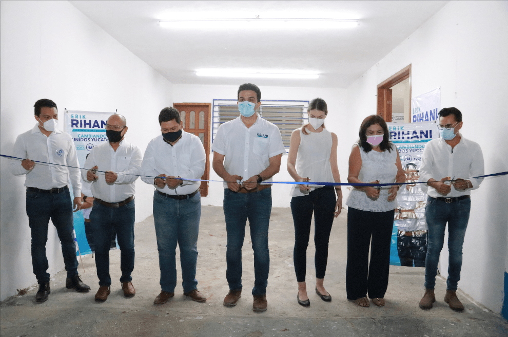 Erik Rihani, candidato a diputado del Partido Acción Nacional por el noveno distrito local inauguró este sábado su casa de enlace en Progreso, la cual está ubicada sobre la calle 33 por 56 y 58 de la colonia Revolución.