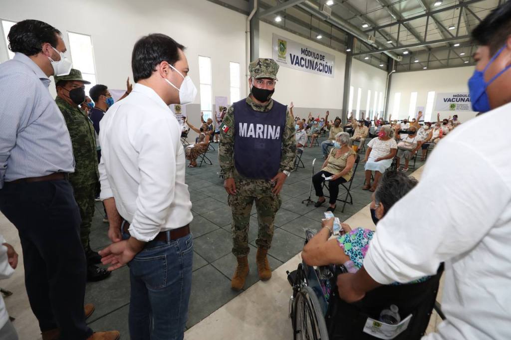 En ese sentido, Vila Dosal agradeció al Coordinador Estatal para la Vacunación, al Ejército Mexicano, a la Secretaría de Bienestar y a la SSY por el trabajo coordinado y eficiente que se ha realizado durante las jornadas de aplicación de las vacunas en Yucatán, pues esto ha permitido que éstas se desarrollen sin mayores contratiempos.