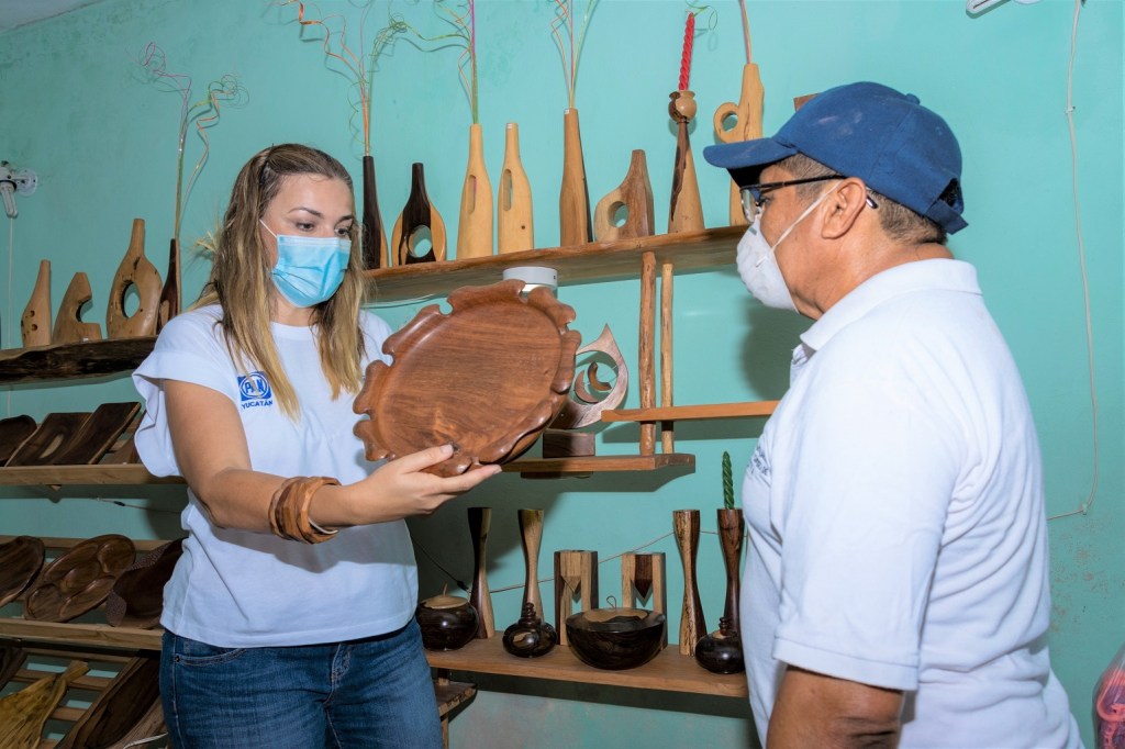 “La crisis ha incrementado en 4.4 por ciento el desempleo y la informalidad también ha aumentado en más de 55 por ciento, por eso es que desde el Congreso hay que promover iniciativas y elaborar leyes para que este tipo de empresas pueda recuperarse y en muchos casos activarse de nuevo” dijo Cecilia a Secundino Chi Chi, un artesano de esta comunidad.