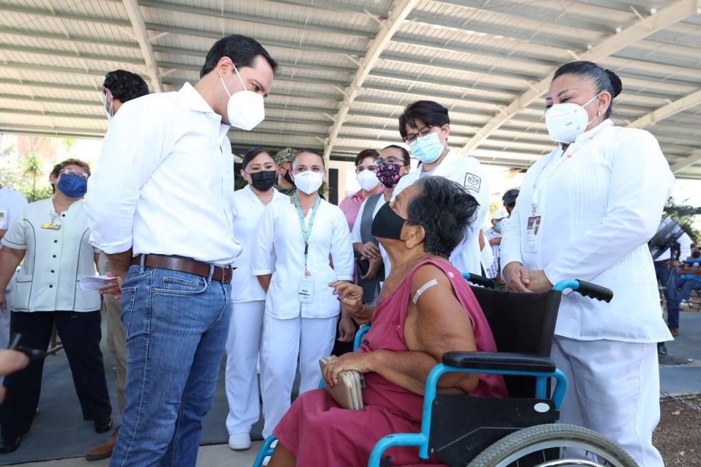 Durante su recorrido por el sitio, Vila Dosal platicó con Martha Tomasa Dzib Uh, quien dijo sentirse muy dichosa de haber recibido la vacuna, ya que es diabética y por más de un año ha estado a la espera de que llegue ese rayito de esperanza.