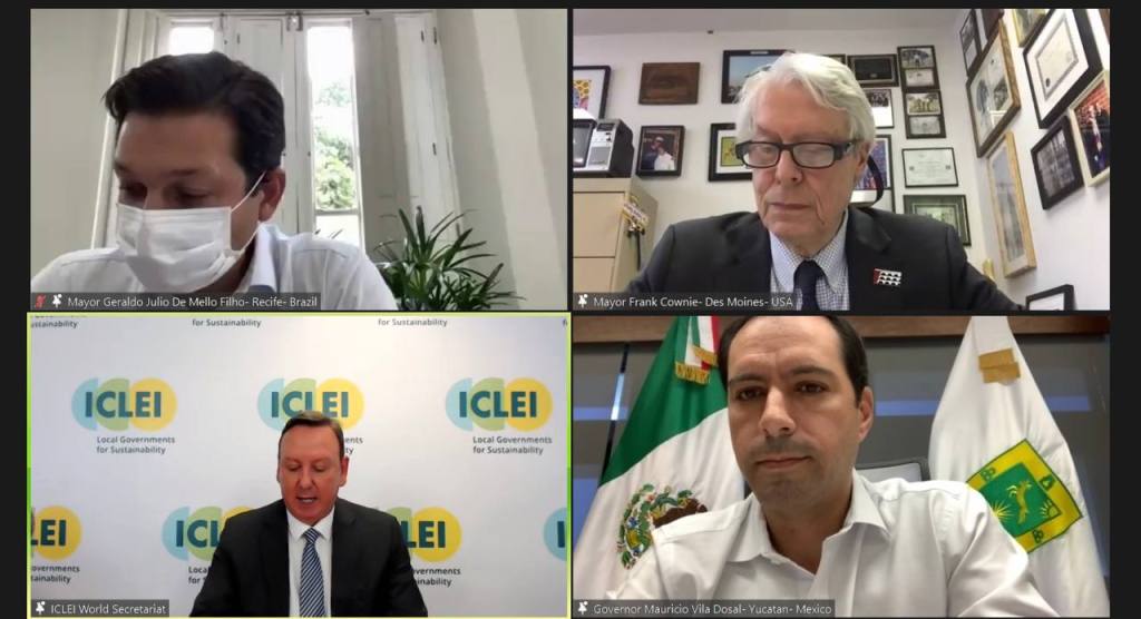 Mérida, Yucatán, 17 de abril de 2021.- El Gobernador Mauricio Vila Dosal participó en la reunión anual del Asiento Regional para México, Centroamérica y el Caribe, y del Portafolio Naturaleza, Biodiversidad y Restauración de Ecosistemas del Comité Ejecutivo Global (GexCom de Gobiernos Locales por la Sostenibilidad (Iclei), donde expuso las principales acciones, retos y avances que se tienen en Yucatán y la zona en materia de políticas sustentables.