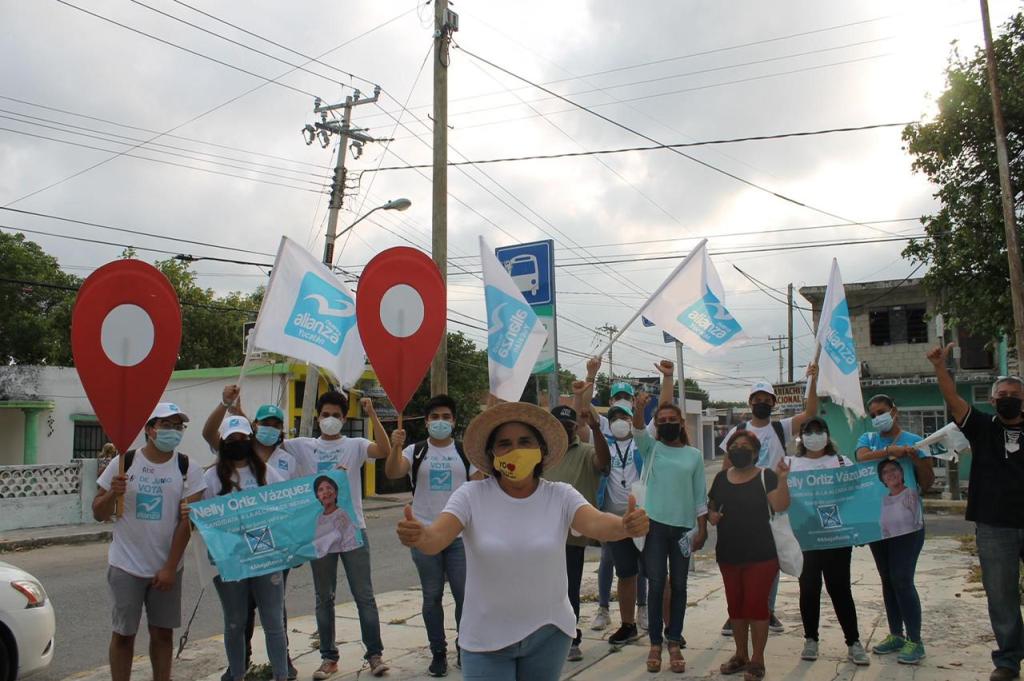 En esta ocasión, acompañó a la candidata de Nueva Alianza, la aspirante a regidora Coral Ceballos, quien representa a la comunidad Trans, y el también candidato a regidor, Jorge Pech, quien es parte del sector de Transporte
