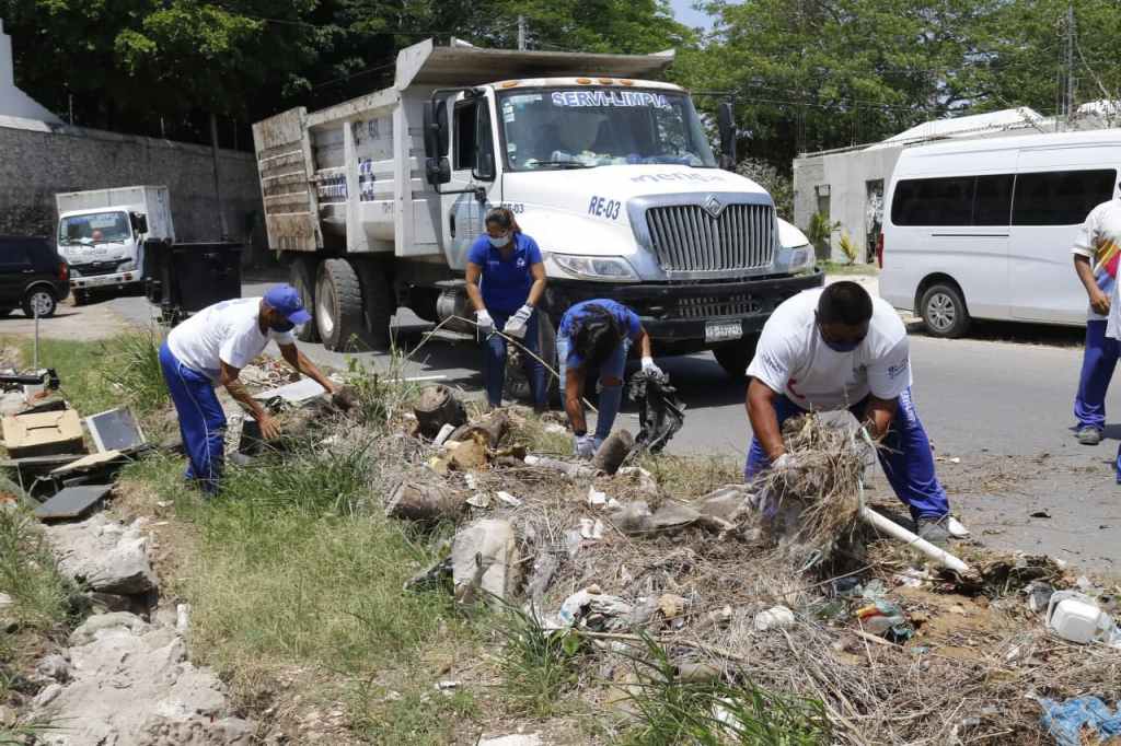 Las acciones de limpieza iniciaron en un tramo de la calle 25 LB en Sodzil, a un costado de la Hacienda, donde personal de la paramunicipal recolectó varias toneladas de residuos sólidos urbanos de tipo domiciliario y de pequeños negocios, entre latas, botellas, cajas y residuos de telas.