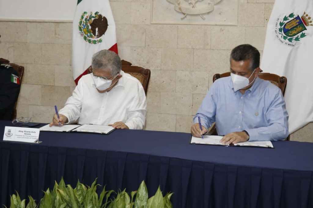 En presencia del presidente del Tribunal Superior de Justicia y del Consejo de la Judicatura del Poder Judicial del Estado de Yucatán, Ricardo Ávila Heredia, el Alcalde dijo que con este convenio personal administrativo y jurisdiccional del Poder Judicial ofrecerá capacitación a cien elementos de la policía municipal y a cinco jueces calificadores al servicio del municipio.