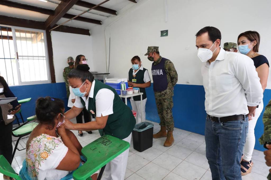Acompañado del coordinador estatal de Vacunación, Capitán de Corbeta Carlos Gómez Montes de Oca, el titular de la Secretaría de Salud del estado (SSY), Mauricio Sauri Vivas y la delegada del Instituto Mexicano del Seguro Social (IMSS) en Yucatán, Miriam Victoria Sánchez Castro, el Gobernador informó que, en la jornada de ayer de la aplicación de la segunda dosis contra el Coronavirus a adultos mayores en 15 municipios del estado, se administraron en total 8,429 vacunas.