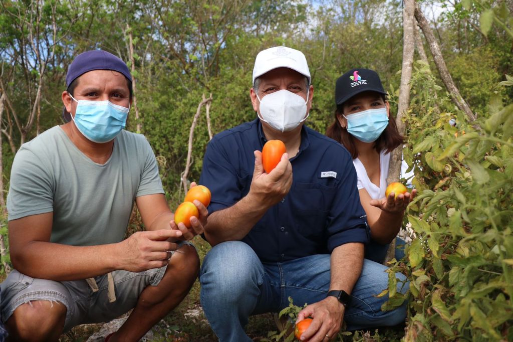 Acompañado por Sandra García Peregrina, directora operativa de la Reserva Cuxtal, el Concejal realizó un recorrido por algunos huertos, donde familias de la comunidad cultivan jitomate, chile dulce, chile xcatic, calabaza y pitahaya.