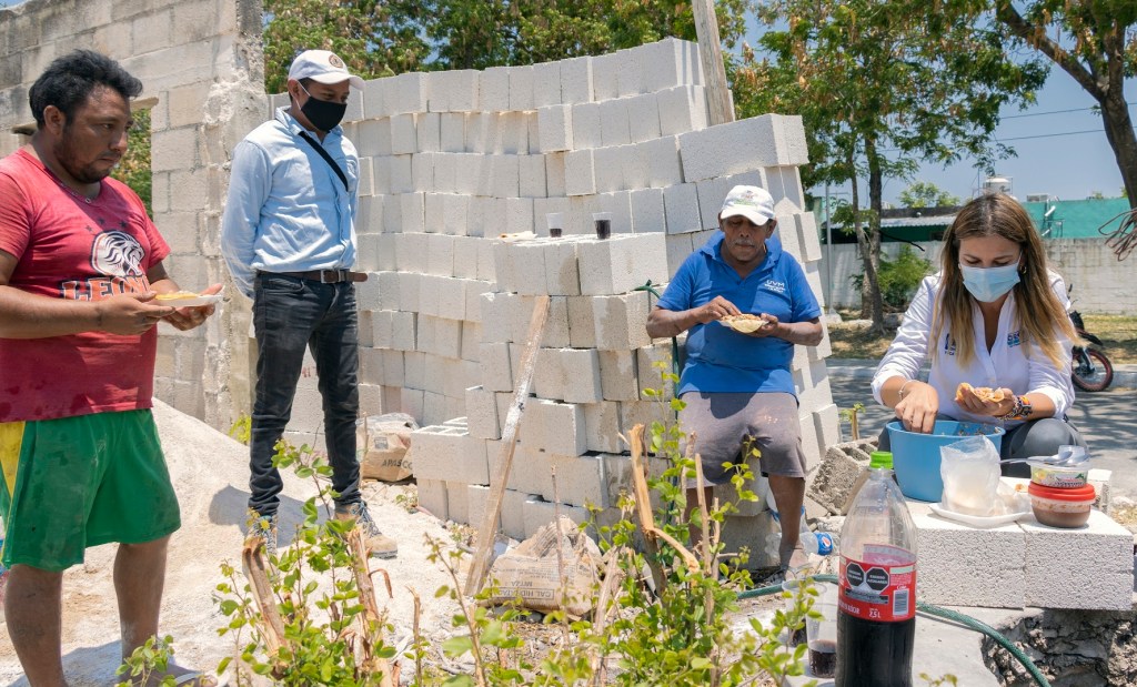 “Ellos son quienes construyen las casas de las familias meridanas y de las cuales sale el sustento para sus hogares” dijo la candidata a un grupo de alarifes con quienes compartió los tacos de chicharra y los refrescos en una obra en la colonia Portes Gil.