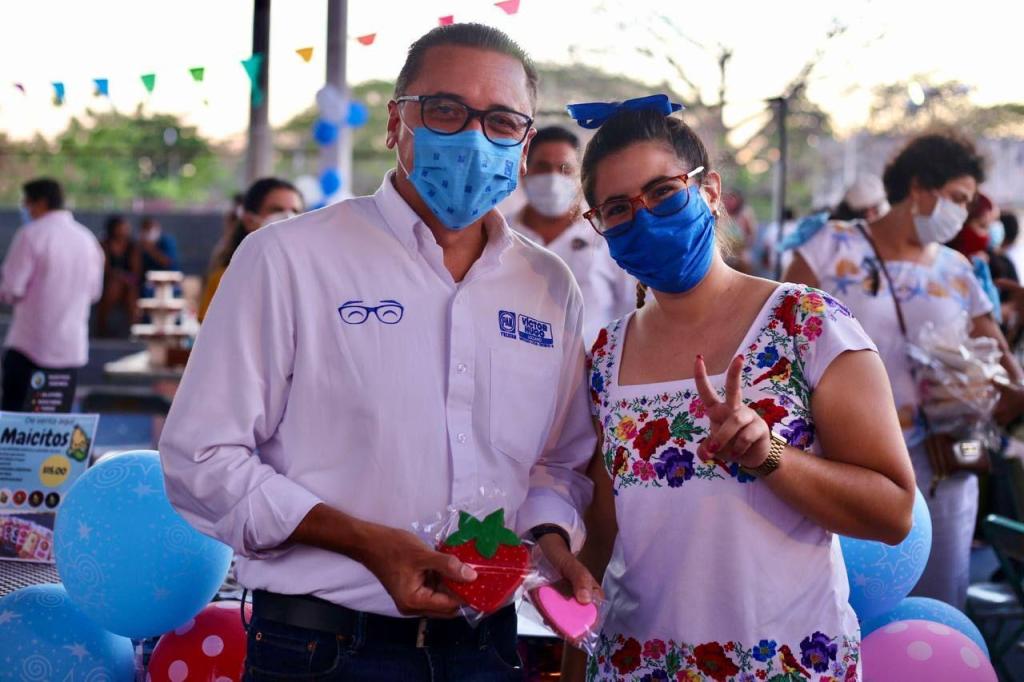 Mérida, Yucatán; a 06 de mayo de 2021.- Con el doble objetivo de apoyar a mujeres y jóvenes y fomentar el consumo local, Víctor Hugo Lozano, candidato a diputado local por el IV Distrito, organizó el Bazar Emprendedor en la Unidad Habitacional Cordemex, en concurrida jornada que concluyó con éxito.