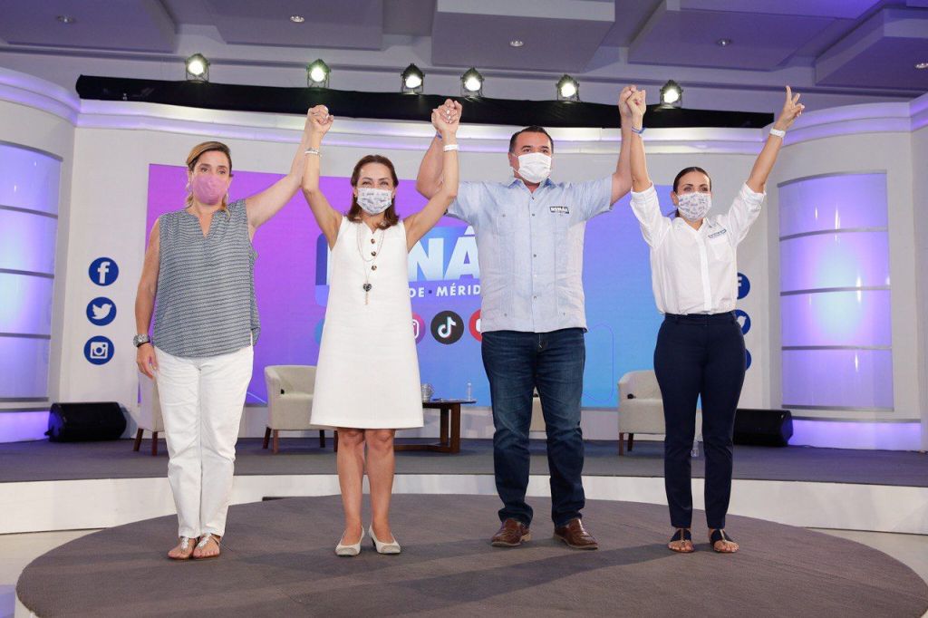 A su vez, Josefina Vázquez subrayó que el próximo 6 de junio Renán Barrera llegará de nuevo al Ayuntamiento de Mérida porque son más las ciudadanas y ciudadanos que quieren seguir viviendo en un municipio seguro.