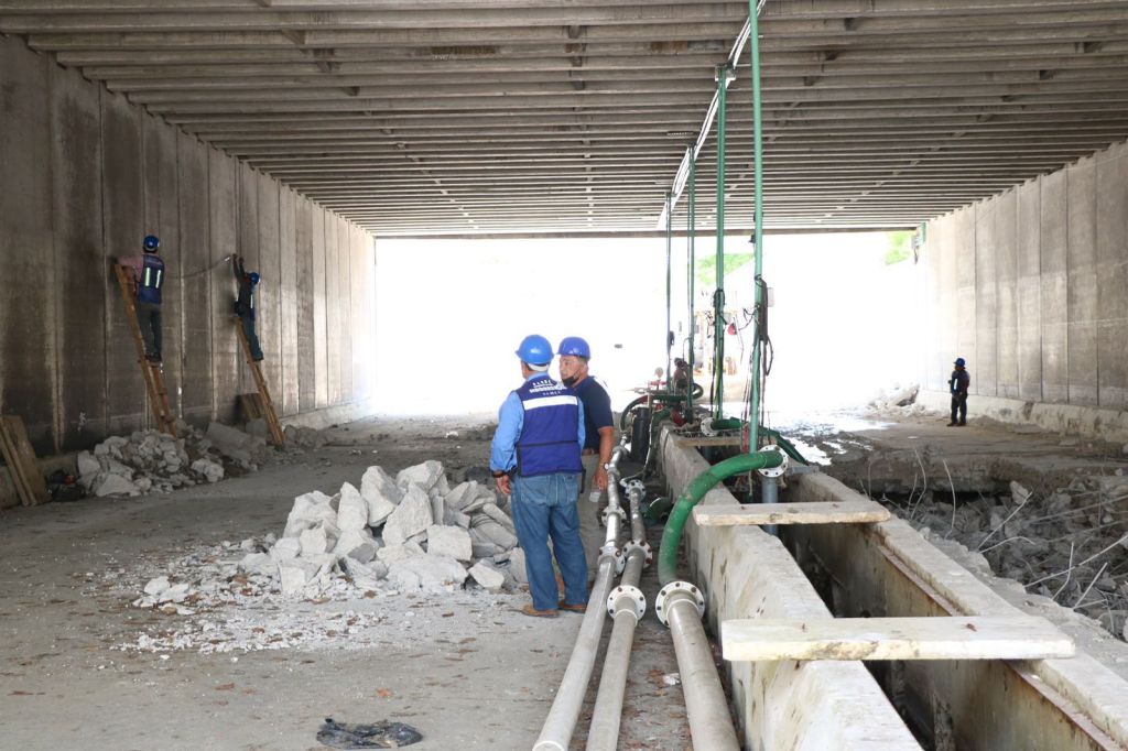 Como se informó en su oportunidad, los trabajos comenzaron con el retiro de agua en la zona, lo que se realiza de manera permanente mientras entra en funcionamiento el nuevo cárcamo.