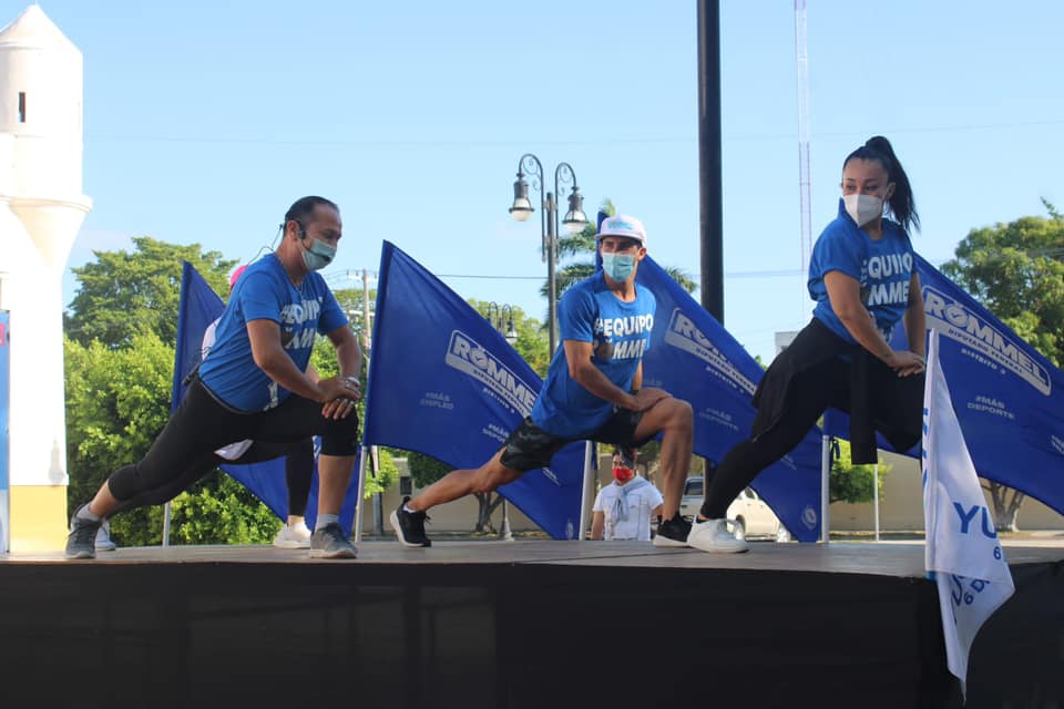 Con un evento de activación física para promover la práctica del deporte y celebrar la reanudación de actividades en parques y espacio públicos, acompañado de la candidata a diputada del PAN Yucatán por el 2do Distrito local, Abril Ferreyro, instructores de activación física y casi 200 vecinos que acudieron a la convocatoria, Rommel emitió su mensaje.