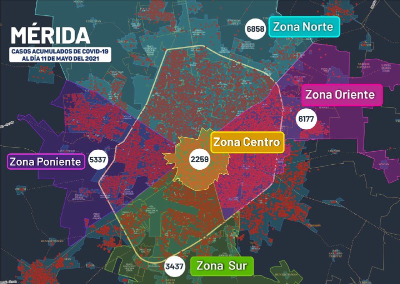 Específicamente, en Mérida se han diagnosticado 24,068 personas contagiadas de coronavirus (casos acumulados al 11 de mayo), que viven en: