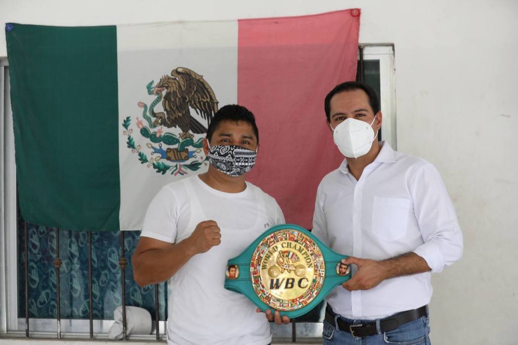 -Antes de partir del municipio de Hunucmá, tras concluir sus actividades de trabajo, Vila Dosal sorprendió al excampeón mundial, Gilberto Keb Baas al visitarlo en su gimnasio de box.