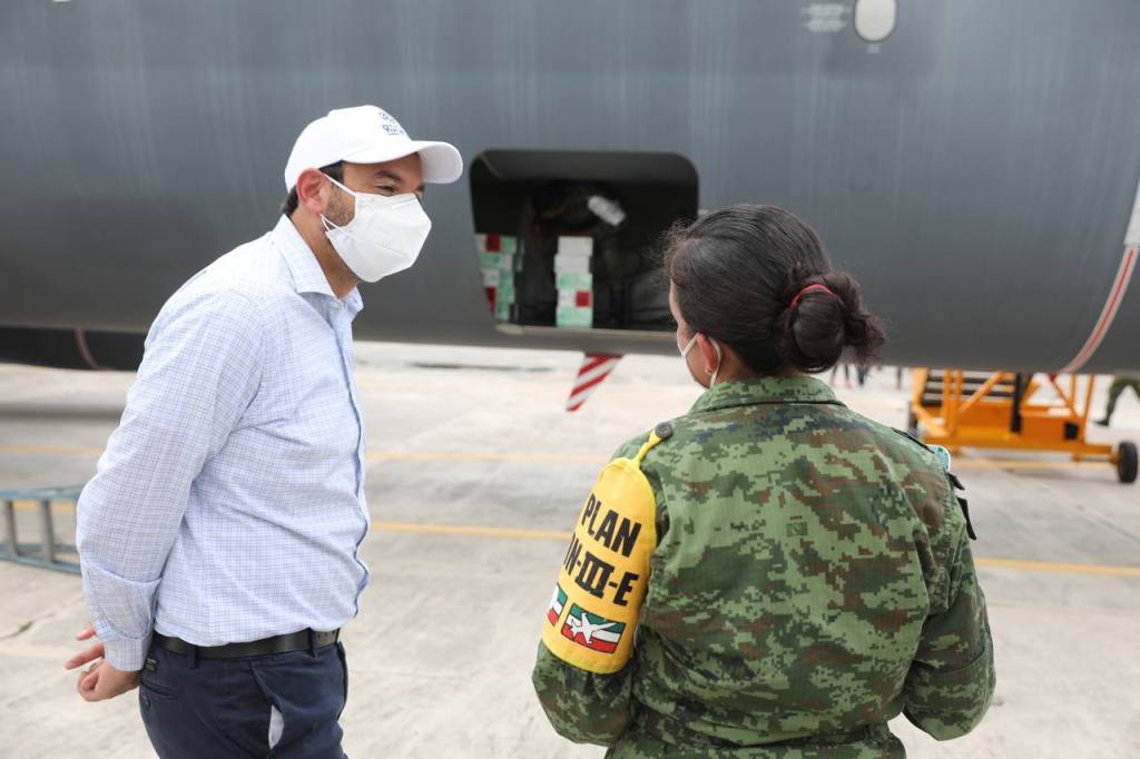 En el arribo de este nuevo cargamento también estuvieron el comandante del Séptimo Batallón de Ingenieros de Combate, Coronel Florentino Ruiz Sánchez; el Teniente Coronel Piloto Aviador Marco Durán García, comandante Accidental de la BAM número 8; y el subdirector de Salud Pública de la SSY, Carlos Isaac Hernández Fuentes.