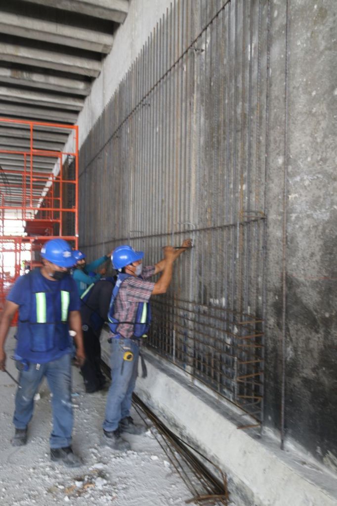 Asimismo, continuaron las demoliciones y la extracción de material excedente, así como la habilitación de acero de diferentes diámetros para muros y pisos.