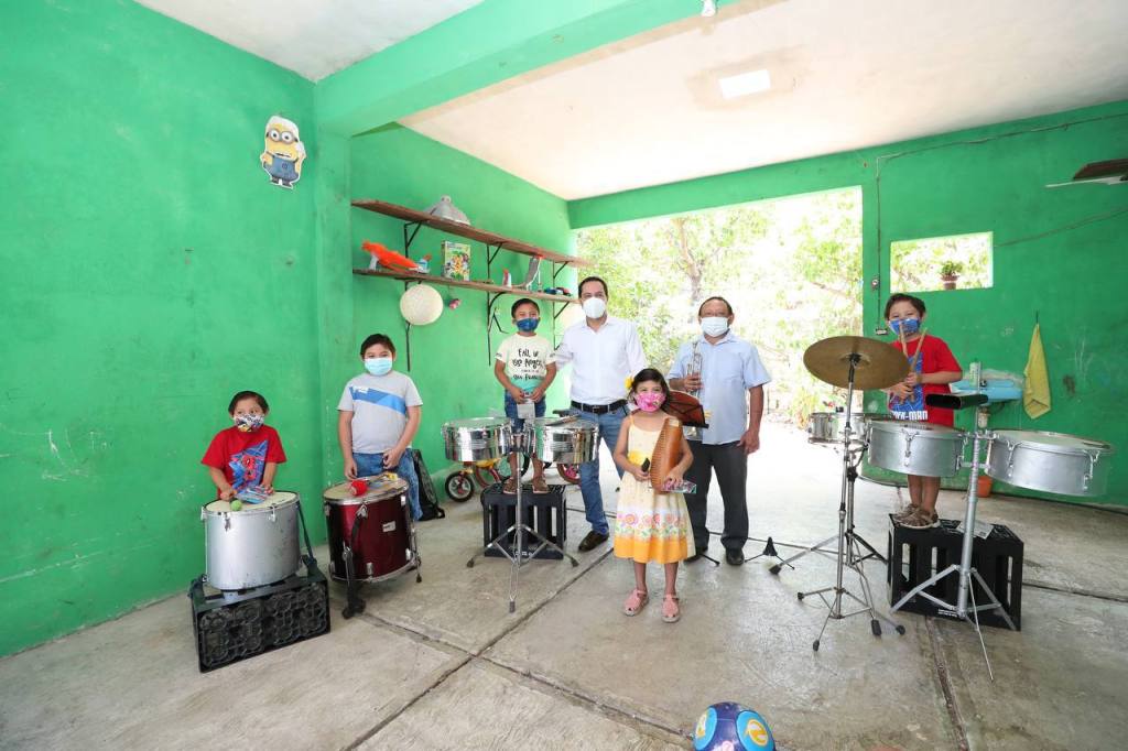 Para reconocerles en algo el talento musical de esos pequeños, Vila Dosal les hizo unos obsequios y los animó a seguir adelante, porque ese es el ejemplo que debemos seguir los yucatecos y las yucatecas para continuar con el ritmo de desarrollo y recuperación en medio del Coronavirus.