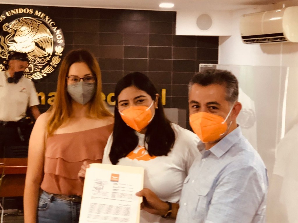 Mérida, Yucatán, 17 de mayo de 2021.- Esta mañana, la dirigencia estatal de Movimiento Ciudadano Yucatán denunció ante la Junta Local del Instituto Nacional Electoral al PRI y a su candidato Sansón Palma, por proferir y difundir expresiones homófobas, así como por vulnerar la norma electoral al publicar imágenes con niñas, niños y adolescentes.
