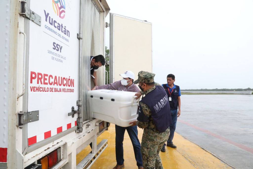 Junto con el coordinador Estatal para la Vacunación Covid-19, capitán de Corbeta Carlos Gómez Montes de Oca, Sauri Vivas constató la llegada del nuevo cargamento, el cual fue descargado por personal del Ejército y colocado en un camión thermoking de la SSY, para luego ser trasladadas al almacén estatal de vacunas, desde donde se distribuirán a los sitios donde se aplicarán.