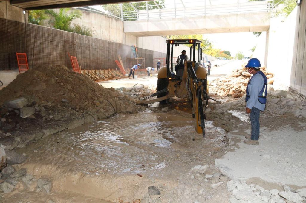 Mérida, 23 de mayo de 2021. Como parte de los trabajos de rehabilitación del Paso Deprimido ubicado en la Prolongación de Montejo con Circuito Colonias realizados esta semana ya están por concluir todas las demoliciones necesarias, apegadas a las indicaciones de los ingenieros estructuristas.