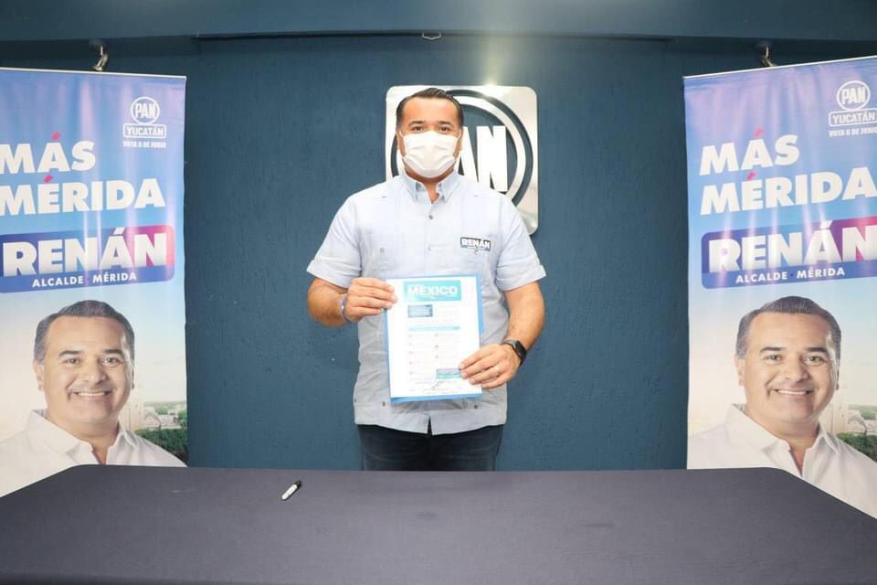 Mérida, 25 de mayo de 2021. Con el compromiso de atender las necesidades más apremiantes de todos los sectores de la sociedad, el candidato del PAN a la Presidencia Municipal, Renán Barrera Concha, firmó esta tarde el Manifiesto México, elaborado por la Confederación Patronal de la República Mexicana (Coparmex).