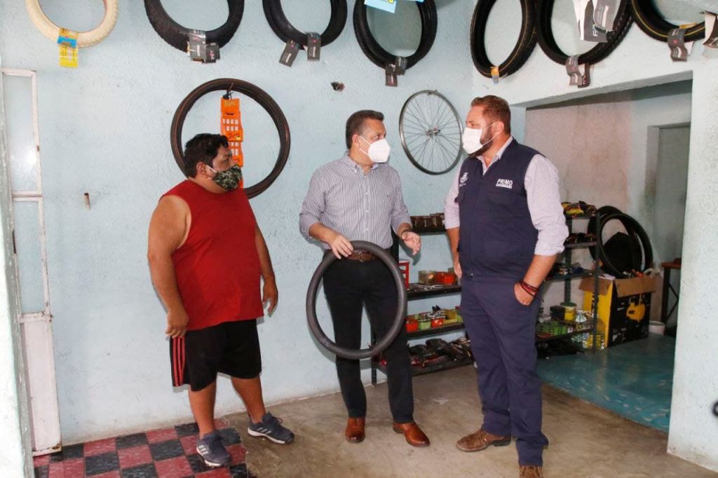 Esta mañana el Concejal visitó el taller de bicicletas “Tury”, ubicado en la calle 42 No. 886-A entre 24 y 19 de la colonia María Luisa, que a través del programa emergente “Surte tu negocio” recibió meses atrás un compresor de aire, herramienta que le ha permitido a la familia Kauil Puga, propietaria del establecimiento, hacer más eficiente su trabajo.