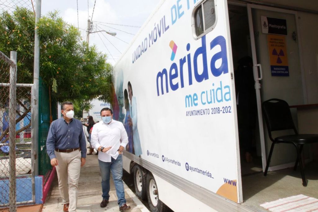 Al realizar un recorrido de supervisión por los módulos itinerantes del programa Feria de la Salud, que se efectuó en el parque “El Bate” de la colonia San Antonio Xluch, el Presidente Municipal constató la atención que brindan las unidades móviles de mastografía, medicina general y dental, en colonias y comisarías de la ciudad, llevando servicios de calidad a la población.