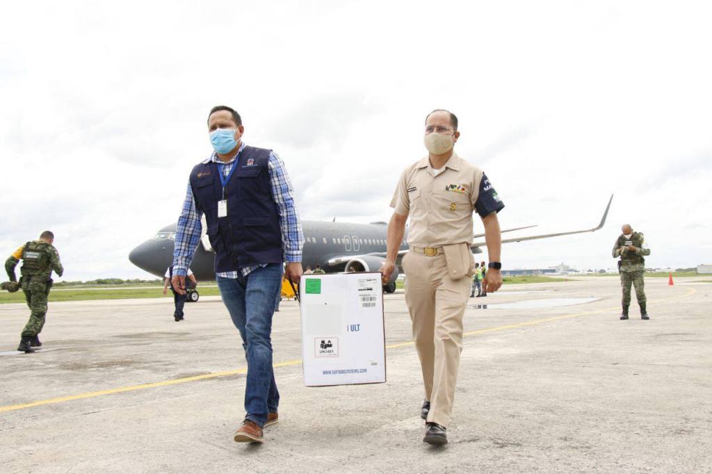 Acompañado del coordinador Estatal para la Vacunación Covid-19, capitán de Corbeta Carlos Gómez Montes de Oca, el funcionario estatal constató la descarga del lote a cargo del personal del Ejército, el cual fue colocado en un camión thermoking de la SSY, para luego ser trasladadas al almacén estatal de vacunas, desde donde se distribuirán a los lugares donde se aplicarán.