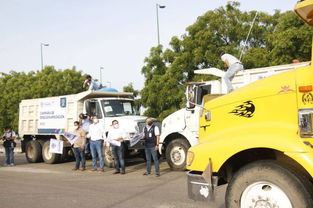 Mérida, Yucatán, 19 de junio de 2021.- Con la meta de recolectar más de 500 toneladas de cacharros, arrancó la Campaña de Descacharrización en Mérida y sus comisarías, la cual se realizará hoy sábado y mañana domingo con el objetivo de contribuir a la eliminación de criaderos de moscos en dichas zonas y, con ello, prevenir las enfermedades transmitidas por vectores ante la temporada de lluvias.