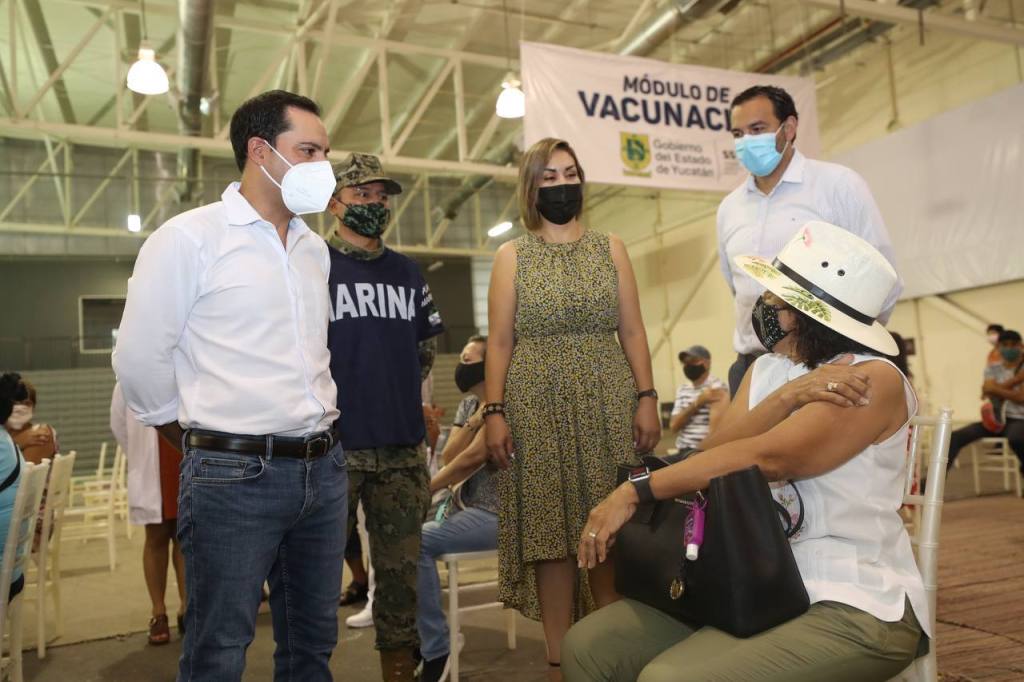 Acompañado del coordinador Estatal para la Vacunación Covid-19, capitán de Corbeta Carlos Gómez Montes de Oca, y del titular de Secretaría de Salud de Yucatán (SSY), Mauricio Sauri Vivas, el Gobernador acudió al macrocentro habilitado en la Unidad Deportiva Kukulcán, donde verificó que el inicio de esta etapa de la vacunación en la capital yucateca transcurra con normalidad, resultado de la coordinación entre el Gobierno del Estado, el Ayuntamiento de Mérida, la Secretaría de Bienestar y las Fuerzas Armadas.