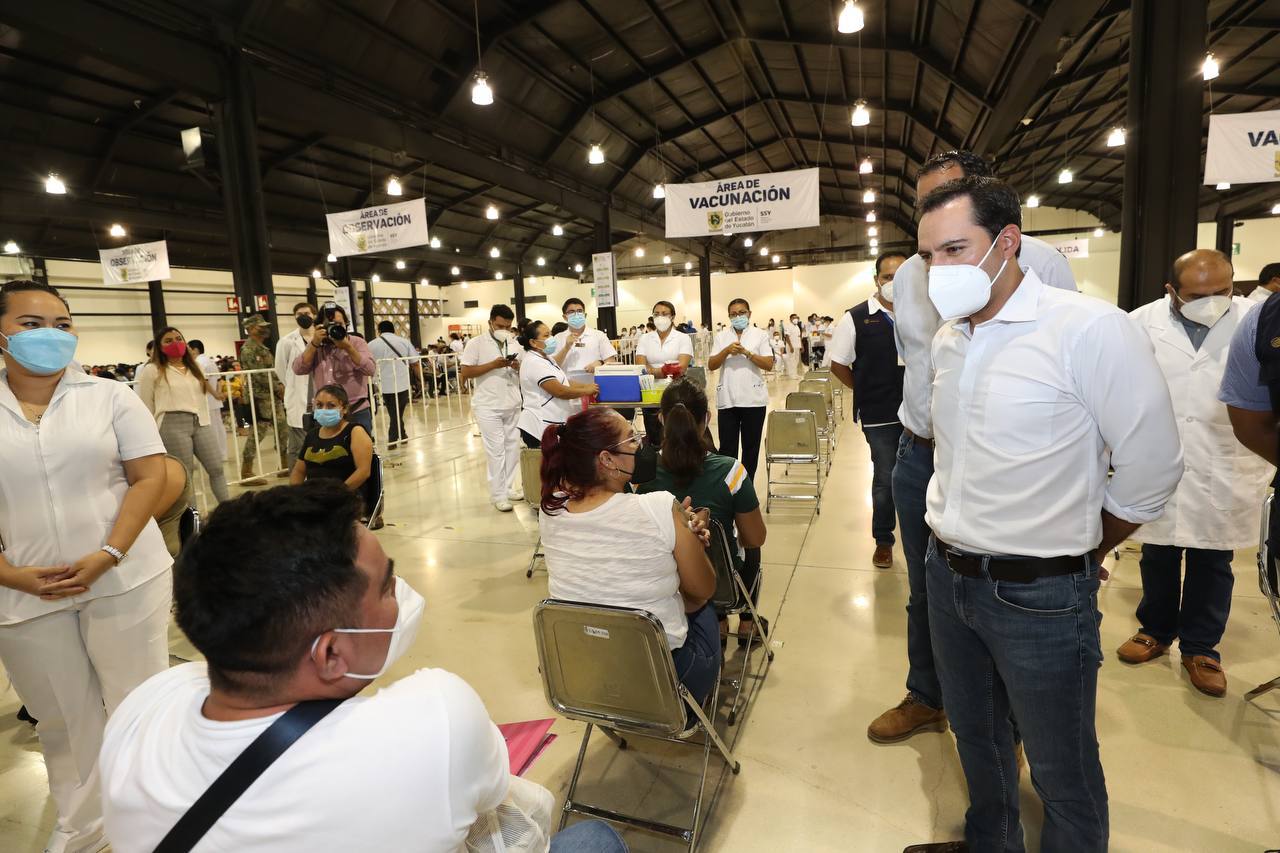 En su recorrido por el módulo de vacunación del Centro de Convenciones Yucatán Siglo XXI, el Gobernador constató que la primera jornada de la vacunación a las personas entre 30 y 39 años se lleva a cabo con tranquilidad y sin contratiempos.