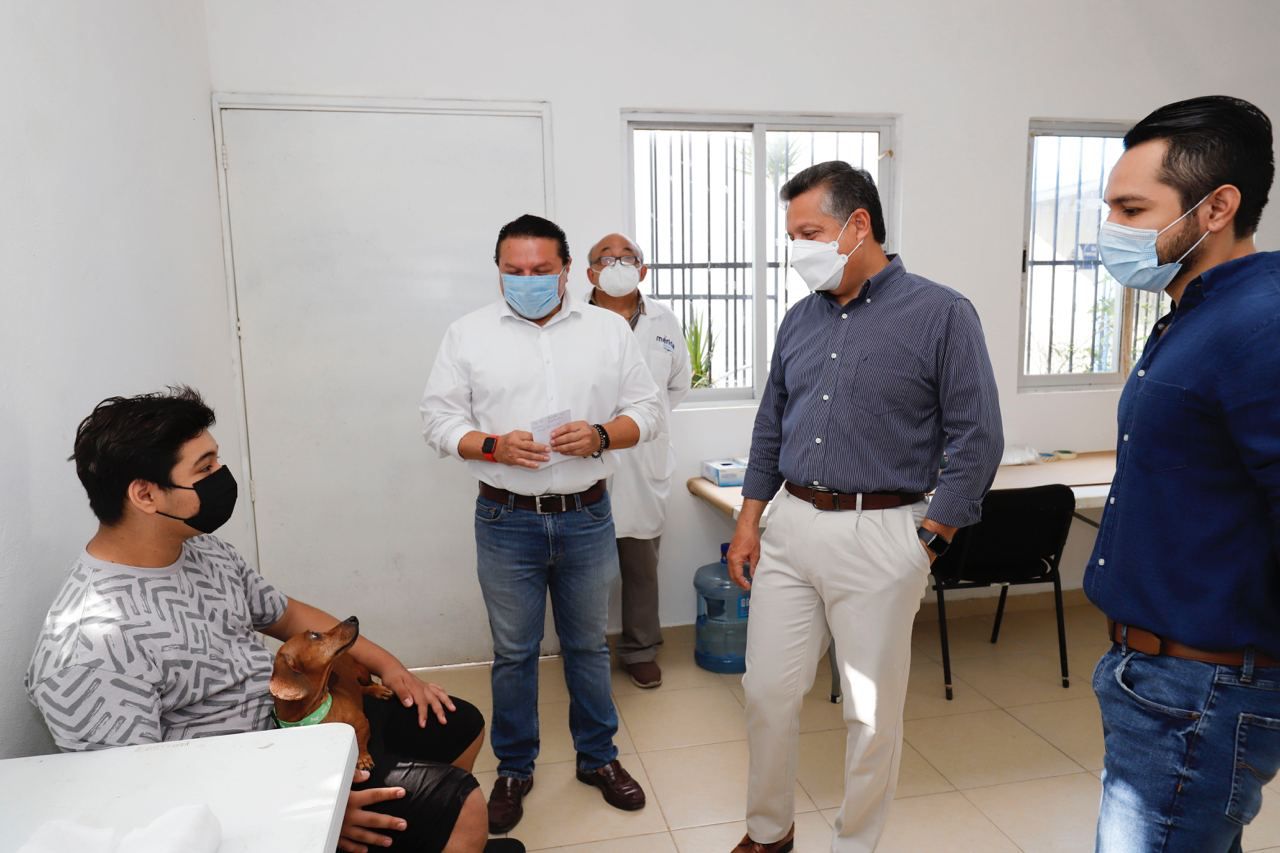Acompañado del director de Bienestar Social, Jesús Aguilar y Aguilar y del subdirector de Salud, Dr. Irving Sauri Cruz, el Alcalde supervisó el proceso de vacunación de los perros y gatos y visitó la zona de consultorios, quirófano y sala de recuperación.