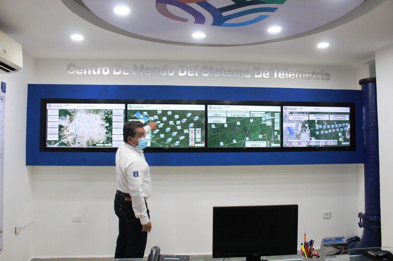Mérida, Yucatán, 8 de julio de 2021.- El uso de tecnología en la Junta de Agua Potable y Alcantarillado (Japay), en la administración que encabeza el Gobernador Mauricio Vila Dosal, redujo a 17 minutos una tarea que, normalmente, llevaría tres horas: apagar las 25 bombas de la Planta Potabilizadora Mérida I para realizar mantenimiento.