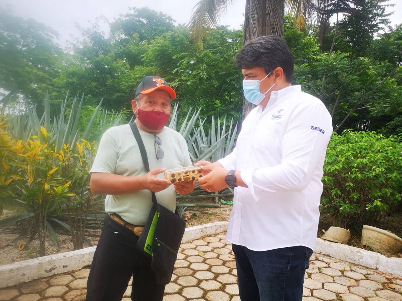Por instrucción del Gobernador Vila Dosal, el funcionario estatal encabezó la distribución de 210 paquetes de insectos a 12 mujeres y hombres de los municipios de Halachó, Kinchil, Cuzamá, Maxcanú y Chicxulub Pueblo.