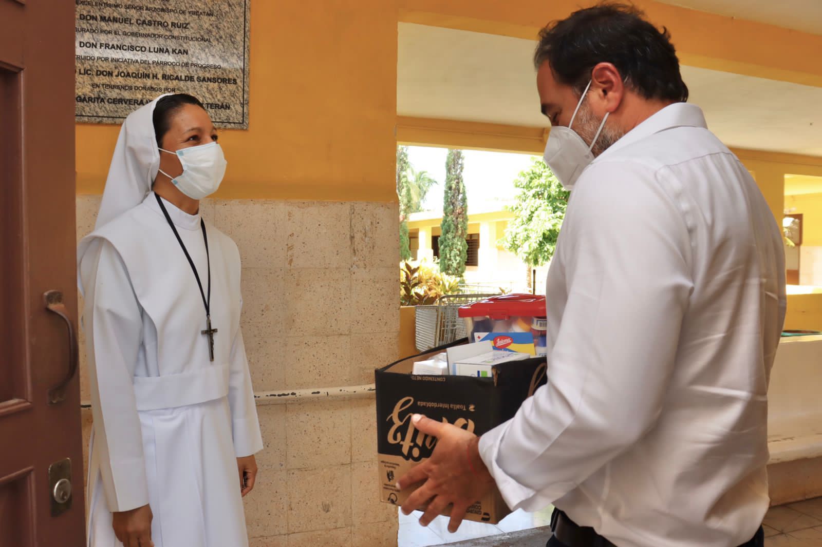 Progreso, Yucatán a 13 de julio de 2021.- Esta mañana el Presidente Municipal de Progreso, Julián Zacarías Curi, visitó el albergue “San Joaquín” para hacer entrega de material de curación y un kit básico de artículos para la protección ante la COVID-19, todo esto con el propósito de reforzar y atender las necesidades de los usuarios.
