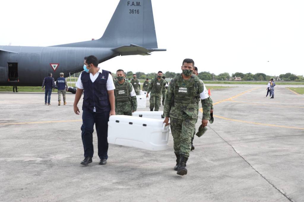 Como indicó el Gobernador Mauricio Vila Dosal, el subdirector de Salud Pública de la Secretaría de Salud del estado (SSY), Carlos Isaac Hernández Fuentes, acudió a la Base Aérea Militar (BAM) Número 8 para supervisar la llegada del nuevo lote de vacunas, abordo de la aeronave C-130 de la Fuerza Aérea Mexicana matrícula 3616, proveniente de la Ciudad de México, que tocó territorio estatal a las 16:17 horas.