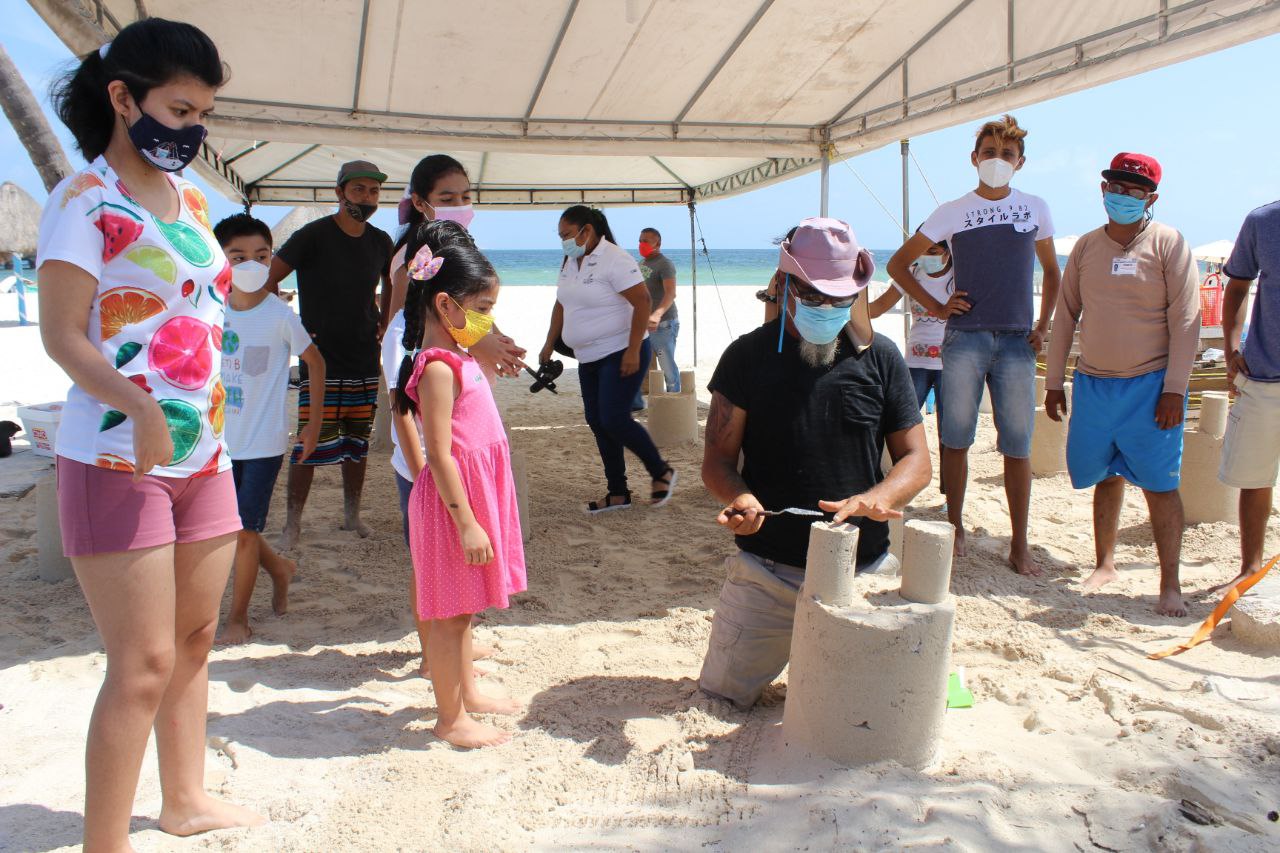 Buscan involucrar a jóvenes con discapacidad al cuidado del medio ambiente y mejorar sus habilidades sociales Progreso, Yucatán a 16 de julio de 2021.- El Ayuntamiento de Progreso, a través de la Dirección de Cultura, impartió este viernes en el malecón tradicional el taller inclusivo de esculturas de arena, esto de la mano de los artistas José Luis González y David Bianchi. Lo anterior, con el objetivo de fortalecer las habilidades sociales de niños y jóvenes que tienen alguna discapacidad, y brindarles más espacios donde se fomente la educación ambiental, la cultura y las artes, resaltó Patricia Rosado González, directora de Cultura, por lo que para tal fin participaron 10 jóvenes progreseños y usuarios de la Unidad Básica de Rehabilitación (UBR) y del Centro de Rehabilitación y Educación Especial (CREE). «Es de suma importancia difundir acciones para que nosotros mismos tomemos cada vez más conciencia sobre el cuidado de nuestro planeta y que mejor que a través de estas actividades que tienen el objetivo de promover nuestras playas limpias y al mismo tiempo incluir a los sectores vulnerables» dijo. Los asistentes pudieron aprender técnicas de modelado y el uso de herramientas básicas para crear diferentes formas como un castillo de arena conformado por escaleras, ventanas y puertas a detalle. Cabe señalar que esta actividad se realizó con las medidas de seguridad pertinentes como el uso del cubre bocas y la sana distancia. Finalmente, Rosado González externó: «siguiendo con la encomienda del alcalde Julián Zacarías Curi, quisimos aprovechar que estos artistas continúan de visita en el puerto para también ofrecer algo novedoso para los progreseños y también para seguir impulsando acciones que nos ayuden a mantener nuestras playas limpias».