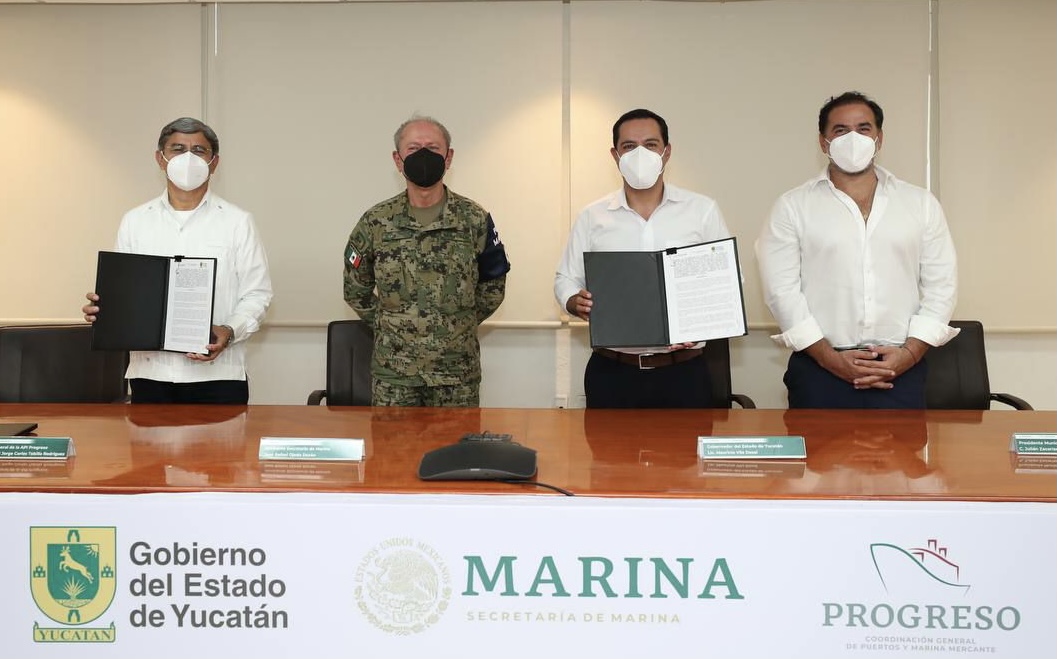-En presencia del titular de la Secretaría de Marina (SEMAR), Almirante José Rafael Ojeda Durán, el Gobernador Mauricio Vila Dosal y el director de la API Progreso, Jorge Carlos Tobilla Rodríguez, firmaron dicho convenio, a través del cual, el Gobierno del Estado y la API Progreso se coordinarán para desarrollar el mencionado plan y llevar a Yucatán a un mejor futuro.