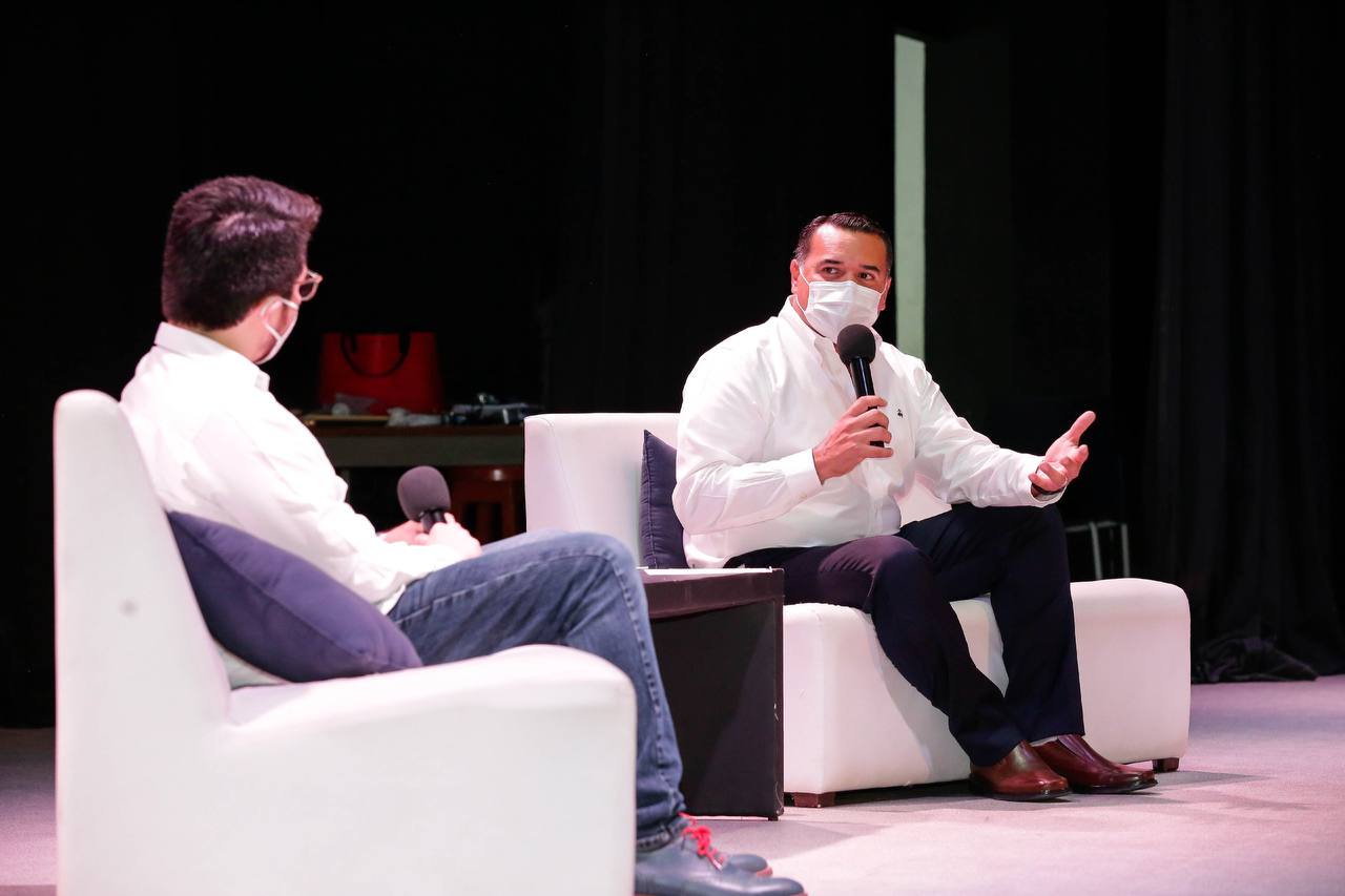 A invitación del Laboratorio de Políticas para la Seguridad y el Desarrollo, el Concejal asistió al foro, realizado en el teatro del Centro Cultural de la Universidad Modelo, donde en formato de entrevista dialogó con el politólogo Juan Pablo Galicia sobre las aportaciones municipales para fortalecer el panorama económico.