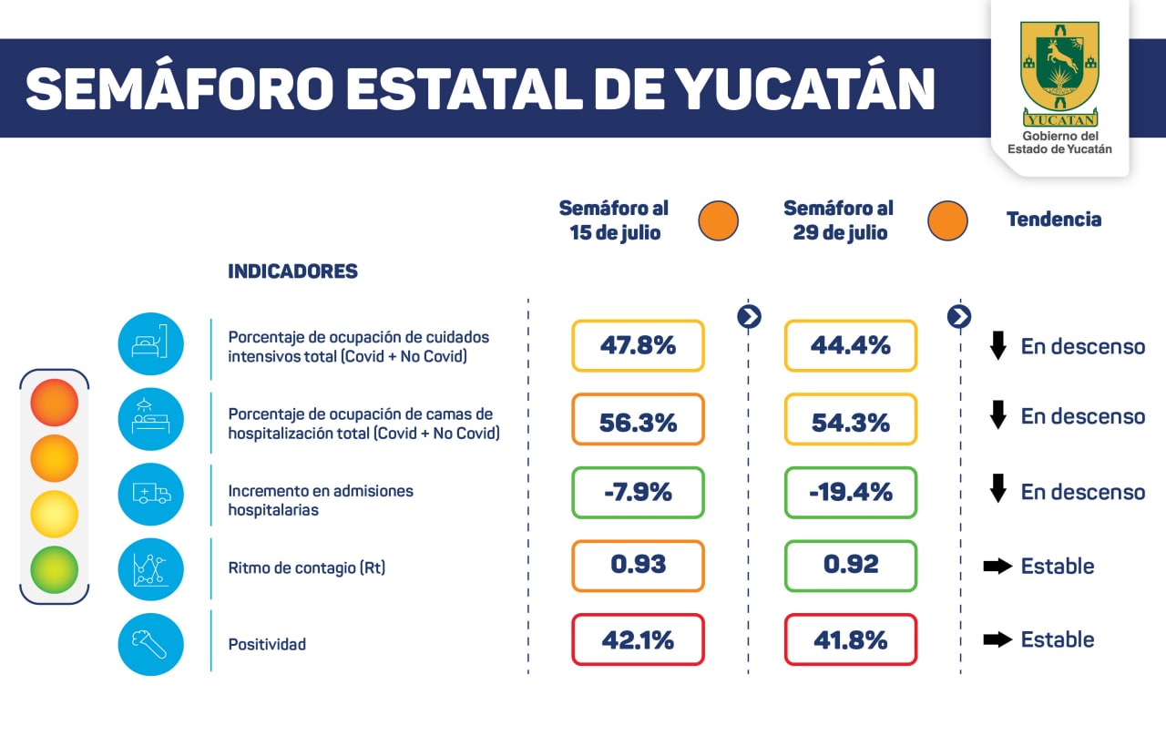 ESTOS SON LOS INDICADORES DEL SEMÁFORO ESTATAL DE YUCATÁN ESTE JUEVES 29 DE JULIO:
