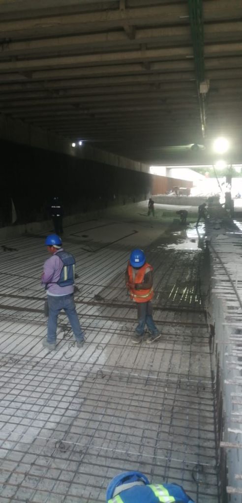 Además, señalaron que se está trabajando de manera óptima en el encoframiento y colado de las tuberías hidráulicas y registros donde se le da recirculación a las aguas que brotan del manto freático en la zona norte y sur del paso a desnivel en su parte más baja.