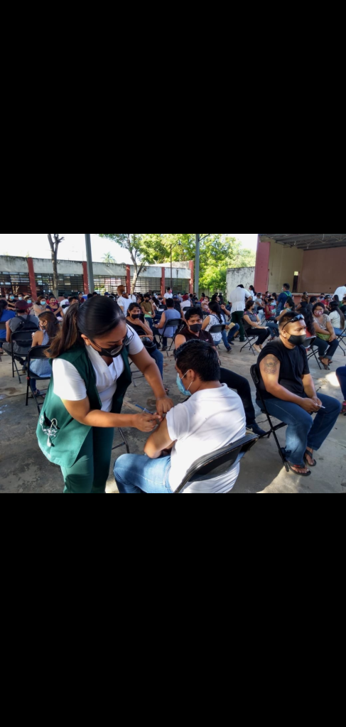 Con la alegría de estar más protegidos contra el Covid-19, los jóvenes motuleños acudieron a vacunarse desde muy tempranas horas del día al macro centro de vacunación en Motul, el cual se encuentra ubicado en la Escuela Secundaria «Eulogio Palma y Palma». Tan sólo en este segundo día de la jornada se aplicaron un total de 1528 dosis de la vacuna Sinovac a jóvenes de 18 a 29 años.