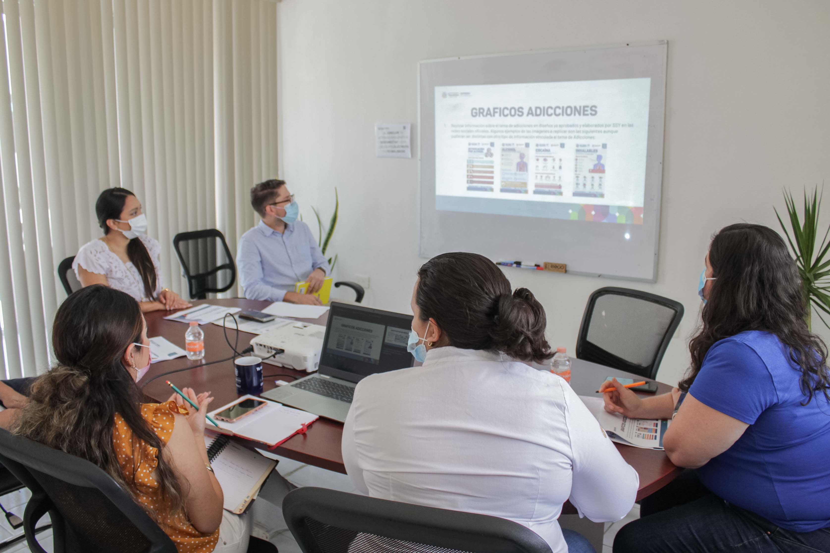 En reunión de trabajo, Joana Briceño Ascencio, titular del Cepredey; Arsenio Rosado Franco, director del Instituto de Salud Mental; Alexandra Méndez Caamal, enlace estatal de la Estrategia Nacional para la Prevención de Adicciones, y Adriana McLiberty Negrín, encargada de Control y Prevención de Adicciones, se comprometieron a desarrollar recursos y divulgarlos en medios digitales y plataformas virtuales, para tener mayor alcance.