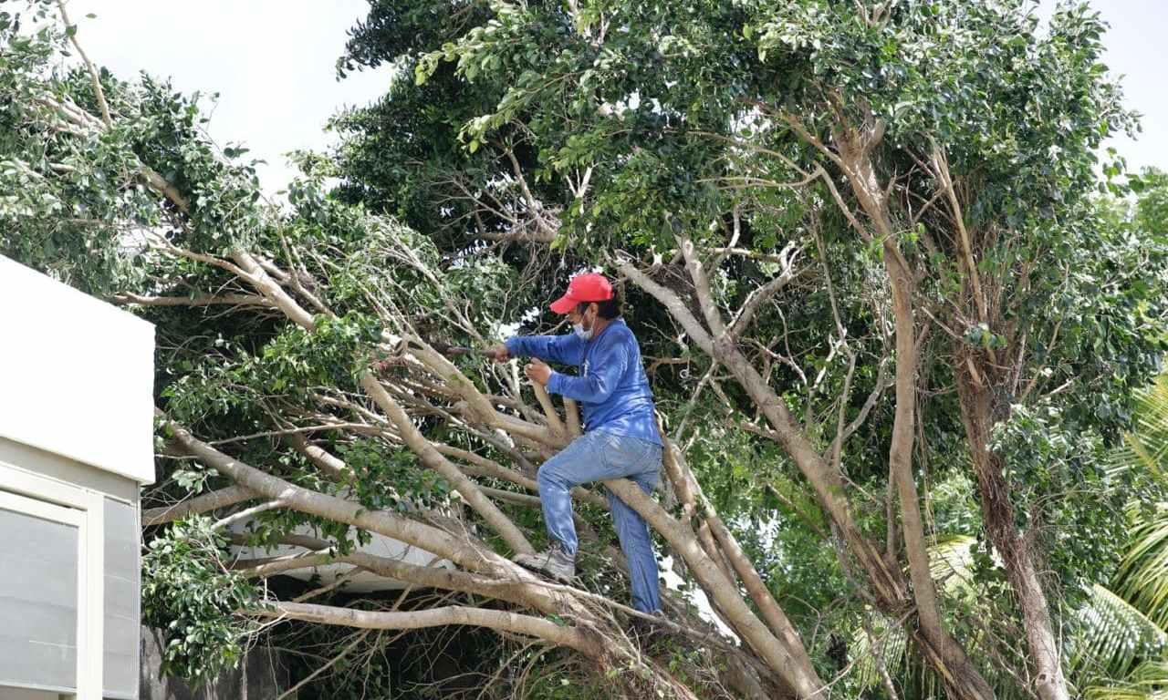 Al día de hoy, las acciones que se están realizando son limpieza, barrido, poda preventiva de árboles y recolección de ramas en la avenida 108 por avenida 55 del fraccionamiento Las Américas.