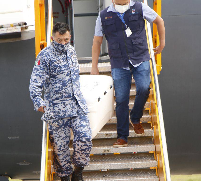 En el arribo del nuevo lote de vacunas también estuvieron presentes el Coronel Gustavo Caratachea Esparza, comandante del 11 Batallón de Infantería, y el General de Grupo Piloto Aviador José de Jesús Morán Gutiérrez, comandante de la BAM Número 8.