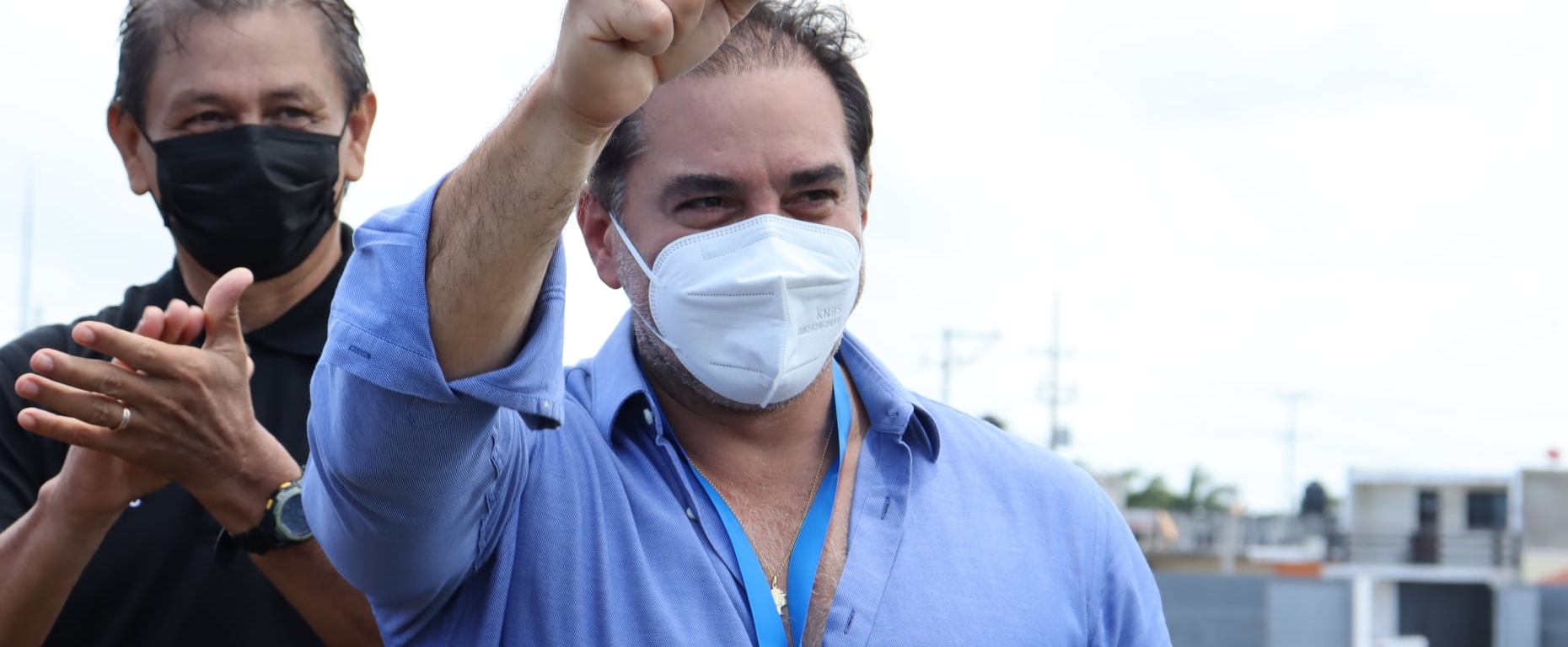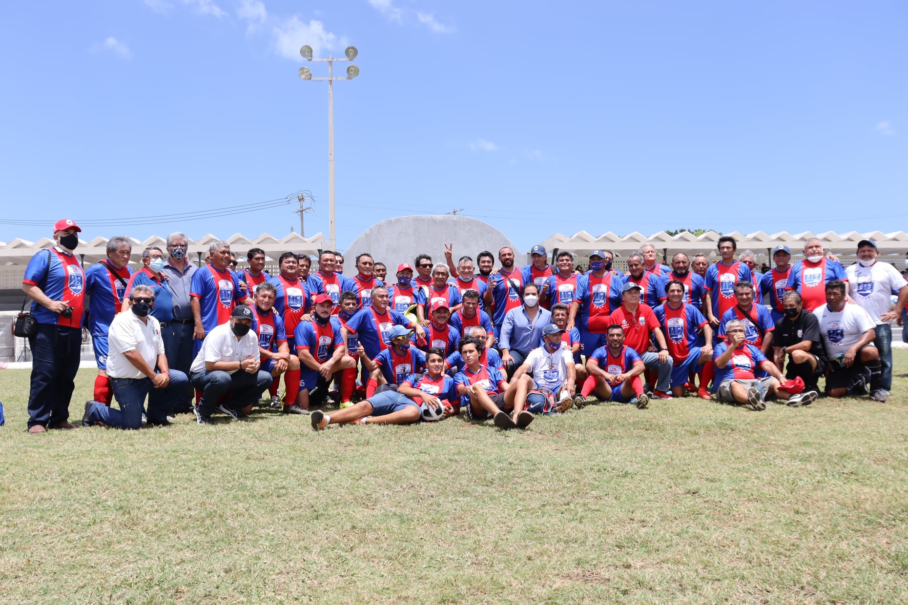 Progreso, Yucatán a 21 de agosto de 2021.- Para conmemorar el 45 aniversario de la fundación del icónico futbol club tiburones de Progreso, el alcalde Julián Zacarías Curi acudió esta mañana a las inmediaciones del renovado Estadio “20 de noviembre”, en donde hizo entrega de reconocimientos a los veteranos que forjaron la historia del deportivo.