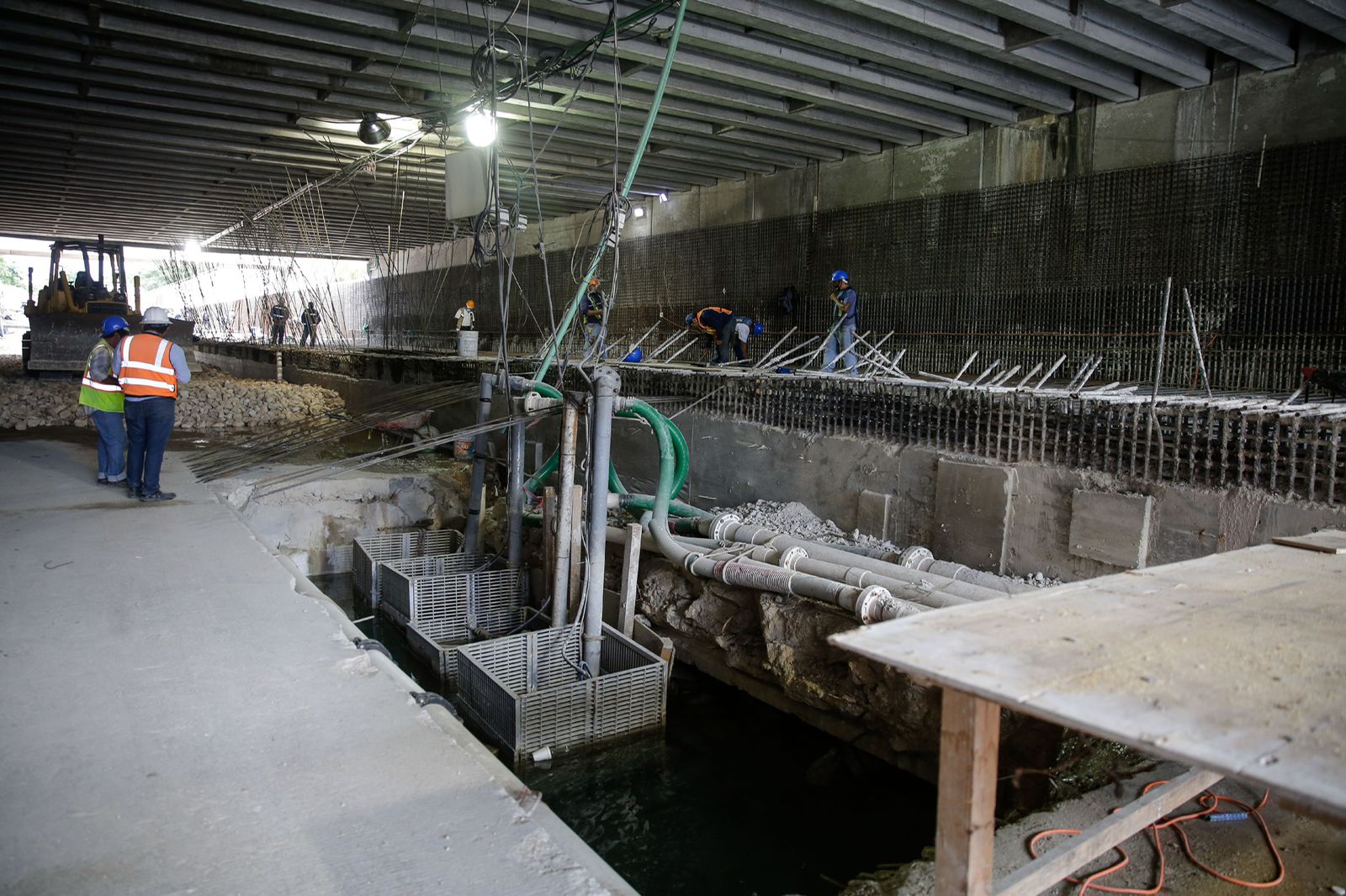 Asimismo, se terminaron los trabajos de colocación de la soportería de metal, lo que permitirá colocar los ductos conectados a las bombas extractoras de aguas que siguen emanando del manto freático, así como las que se precipitan por las lluvias.