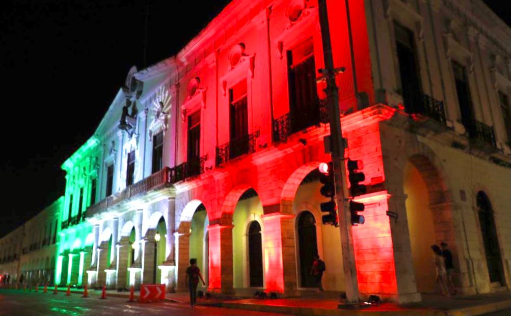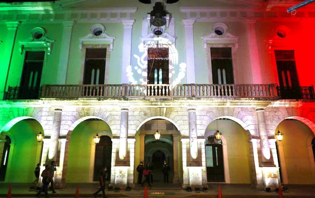 En la fachada del histórico edificio se proyectarán durante todas las noches del presente mes los colores verde, blanco y rojo de la enseña nacional, con lo que Yucatán se suma a los festejos nacionales.