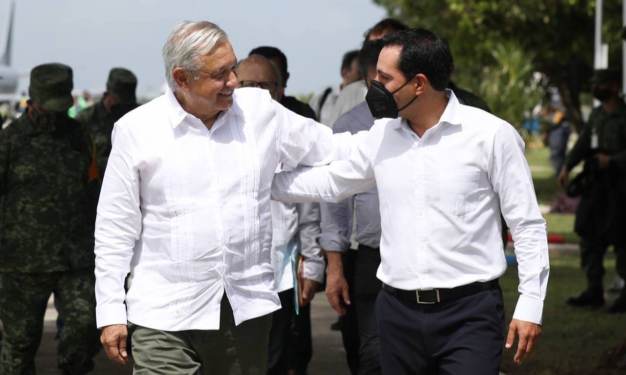 -En la Base Aérea Militar Número 8 en Mérida, Vila Dosal y López Obrador evaluaron los avances en los trabajos de construcción del tramo 3 Calkiní-Izamal de esa obra de infraestructura ferroviaria.