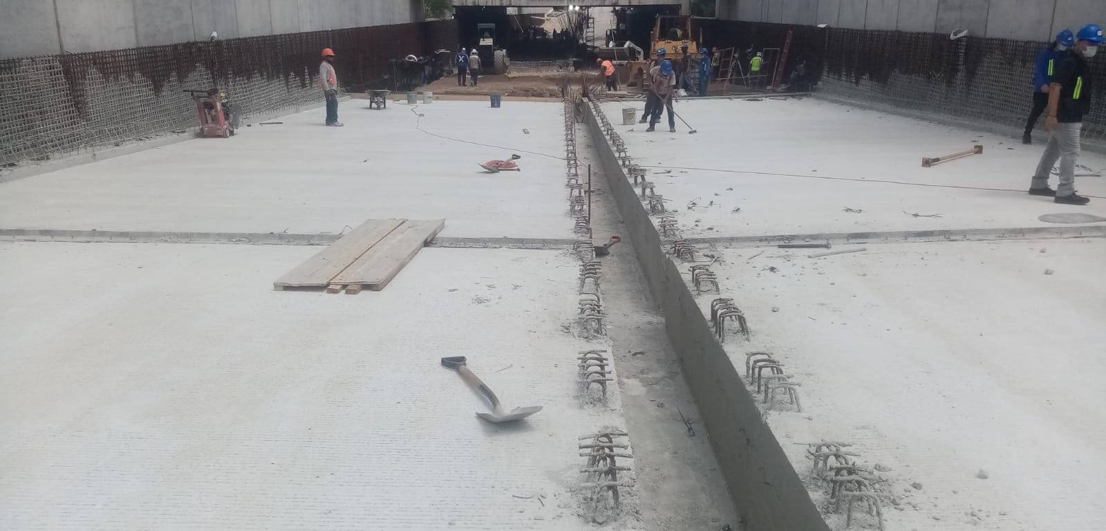 Con muchas acciones de detalle y cuidado se continúa el armado de acero para la losa que cubrirá el nuevo cárcamo hermético este tejido tiene un área de 380 metros cuadrados.