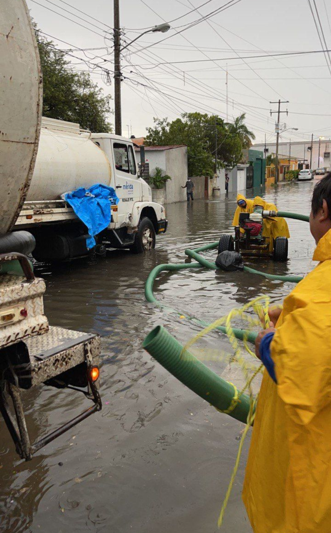 Mérida, 7 de septiembre. – Ante la fuerte lluvia que se ha presentado desde la tarde de hoy, cuadrillas de Servicios Públicos Mérida realizan labores de desagüe, recolección de basura y ramas y reparación de luminarias en diferentes puntos de la ciudad y sus comisarías.